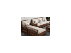 晨伴 沙发 胡桃木实木沙发组合带贵妃冬夏两用小户型可储物新中式沙发客厅家具套装 五人位+贵妃榻+茶几